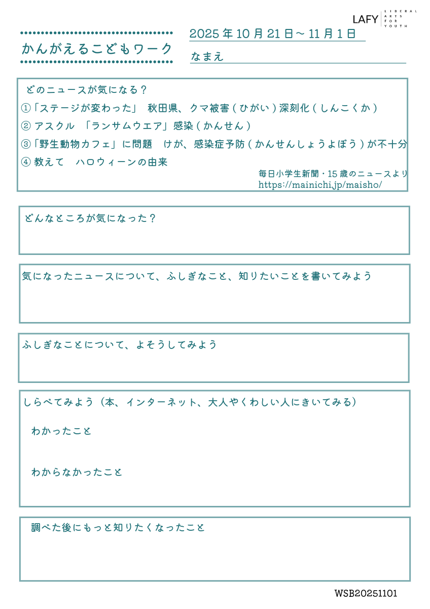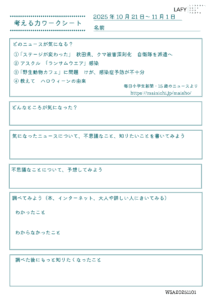 今週のニュースから思考を広げる「考える力ワークシート」を更新しました。