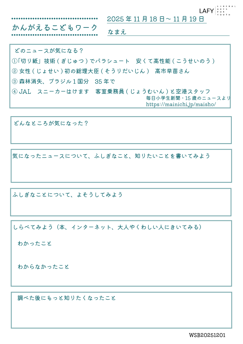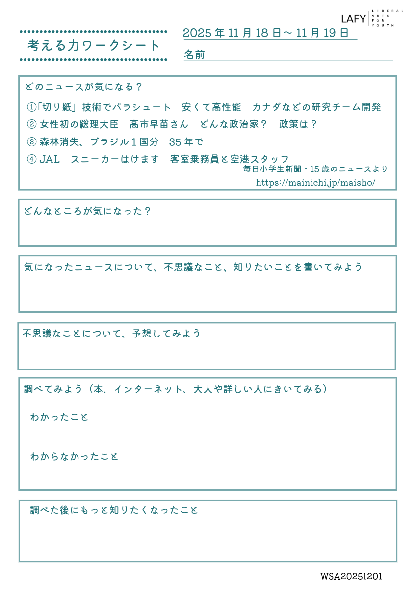 今週のニュースから思考を広げる「考える力ワークシート」を更新しました。