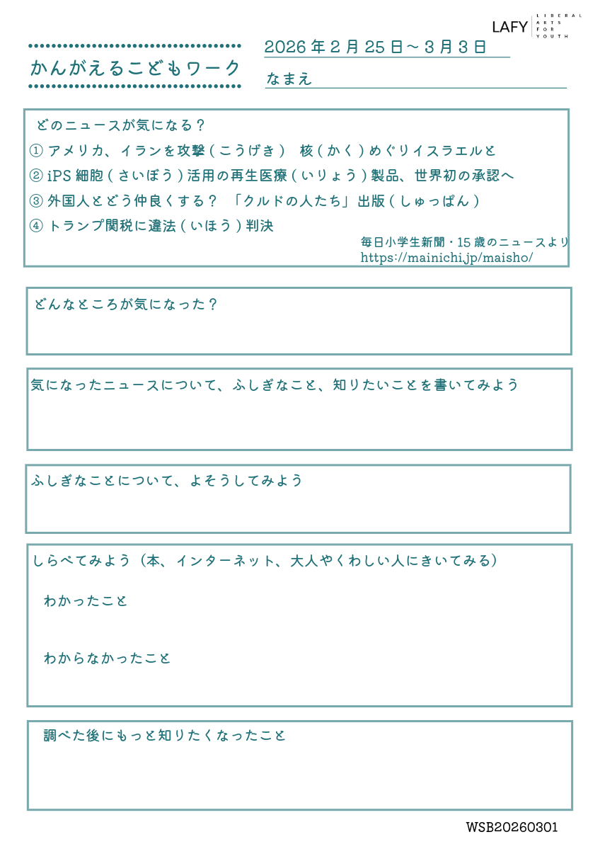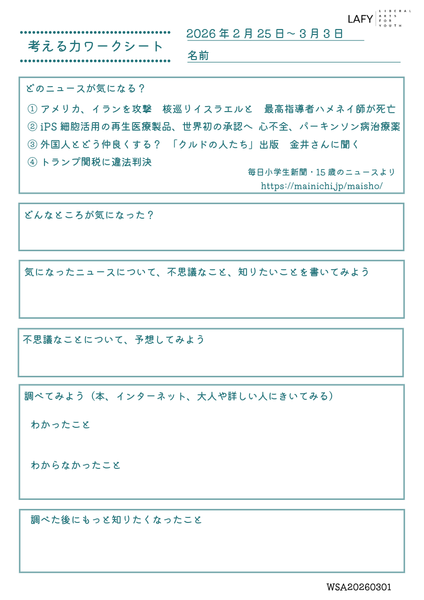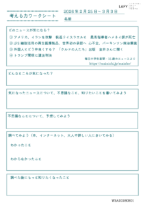 今週のニュースから思考を広げる「考える力ワークシート」を更新しました。